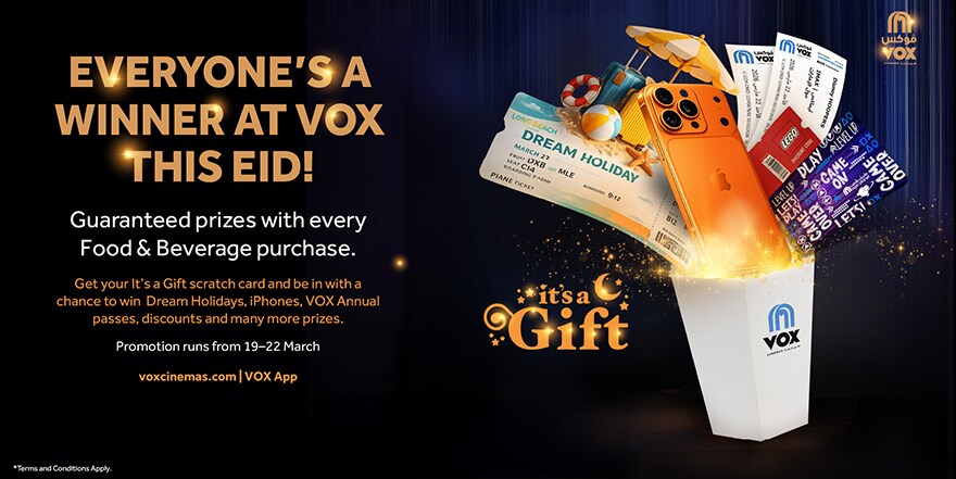 - The Eid Scratch & Win promotion is valid at all VOX Cinemas locations in the UAE from 19 March to 22 March 2026.